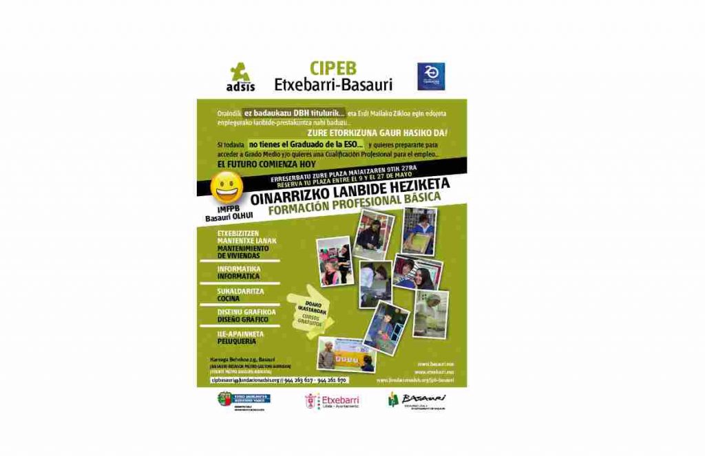 Abierto el plazo para matricularse en el instituto municipal de Formación Profesional Básica Etxebarri Basauri (CIPEB), que este año ha adelantado sus fechas de inscripción. Por tanto, ya es posible matricularse para cursar los estudios de artes gráficas, cocina y restauración, informática y comunicaciones, mantenimiento de viviendas o peluquería.