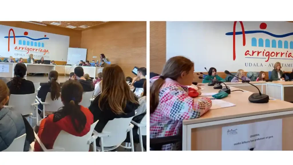 El Foro Municipal de Agenda Escolar 2030 tuvo un encuentro en el Ayuntamiento de Arrigorriaga con la alcaldesa, Maite Ibarra, y la concejala, Idoia Molina, para hablar de las propuestas y la acción transformadora a las que el alumnado se había comprometido el pasado curso dentro del proyecto Agenda Escolar 2030: producción y consumo responsables, entre ellas la creación de una web transformadora.