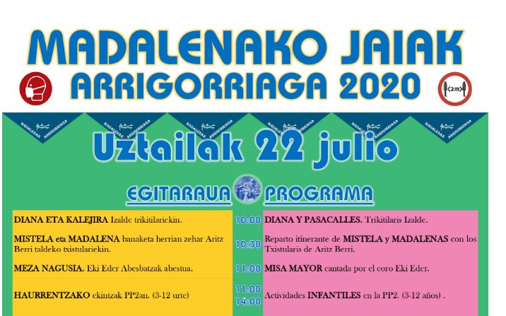 A pesar de haber suspendido las fiestas de la Madalena para este año por motivo de la pandémia del virus COVID19, en reuniones posteriores con la Jai Batzordea se trabajó en la propuesta de realizar un programa simbólico para el día de la Madalena.