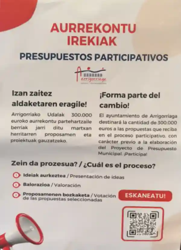 Para poder hacer sus propuestas la ciudadanía tiene dos vías, la presencial en la que se deposita el tríptico con sus aportaciones en las urnas distribuidas en los edificios municipales, o a través de internet, en la web habilitada a tal efecto. También se puede acceder a la web escaneando el código QR del cartel. Hay que decir, que ya se ha comenzado con el buzoneo de estos trípticos por los domicilios de los y las arrigorriagarras.