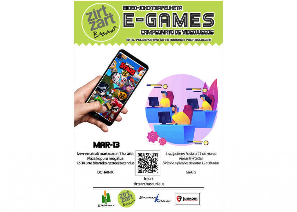 El primer E-Game de localidad se celebrará dentro de dos semanas en Artunduaga bajo el original título de BASAURe-Games. En este evento, organizado por Zirt Zart, el departamento de juventud del ayuntamiento de Basauri y la empresa Funkom, asistiremos a la disputa de un torneo de FIFA21 para la plataforma PlayStation 4 y, por otro lado, se organizará un torneo multijugador de Brawl Stars para dispositivos móviles.