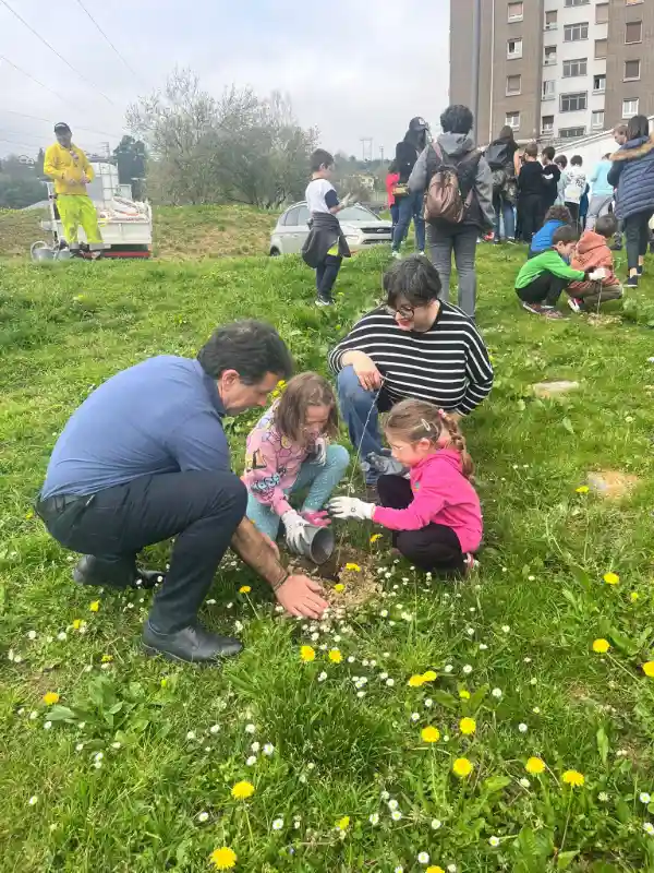 En la plantación de los 100 ejemplares, 50 de ellos en las inmediaciones de la Taberna Mayor de San Miguel y otros 50 en el entorno de Etxegarai, han participado por parte del Ayuntamiento el alcalde de Basauri, Asier Iragorri, e Irene García, concejala de Medio ambiente.
