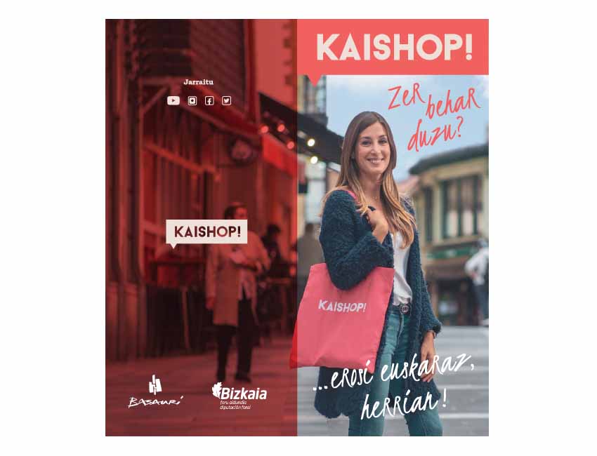 Alkarbide, el punto de encuentro de los servicios de euskera de los municipios de Bizkaia , en colaboración con el Ayuntamiento de Basauri y otros municipios y mancomunidades de Bizkaia, y con la ayuda de la Diputación Foral de Bizkaia, ha puesto en marcha la campaña KAISHOP! Zer behar duzu?, uniendo el comercio local y el euskera.