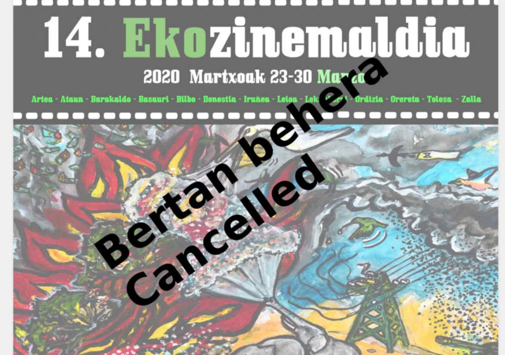 El colectivo ekologista de Basauri Sagarrak ha anunciado que se cancela el Ekozinemaldi organizado en este municipio a causa de la crisis del coronavirus.