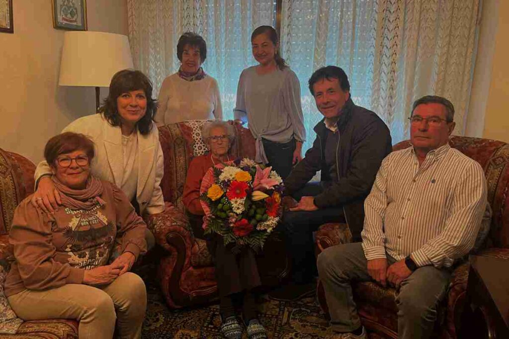 Rodeada por su familia, Clari también recibió la visita de Asier Iragorri, alcalde de Basauri, y María Larrinaga, concejala de Política Social, quienes quisieron acercarse a su domicilio para felicitarle y compartir con ella una fecha tan significativa.