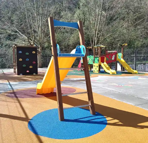 La reforma ha consistido en la instalación de una torre con diferentes elementos, un tobogán y un combinado para trepar. Además, se ha sustituido el anterior pavimento de seguridad, conformado mediante losetas de caucho, por otro continuo.