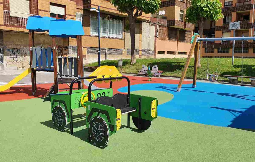 El parque infantil de la plaza tras el 10 de la Av. San Antonio estrena suelo acolchado y nuevos elementos de juego