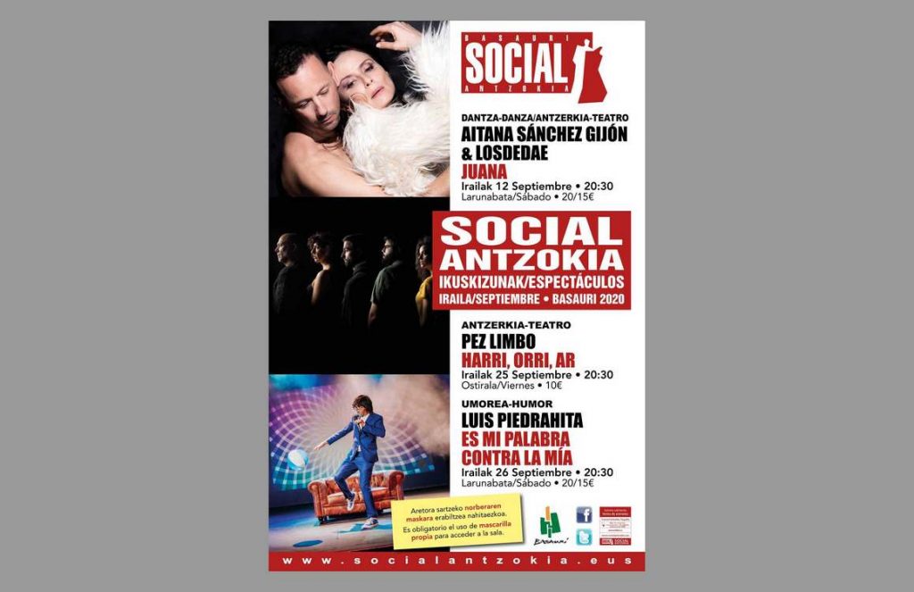 Bajo el lema » Ilusio Gehiagorekin Itzuliko Gara», el Social Antzokia de Basauri anuncia que ya se pueden adquirir las entradas para los espectáculos en vivo de la nueva temporada. Las representaciones se llevarán a cabo con un menor aforo para respetar la distancia social y con todas las medidas de seguridad e higiene.