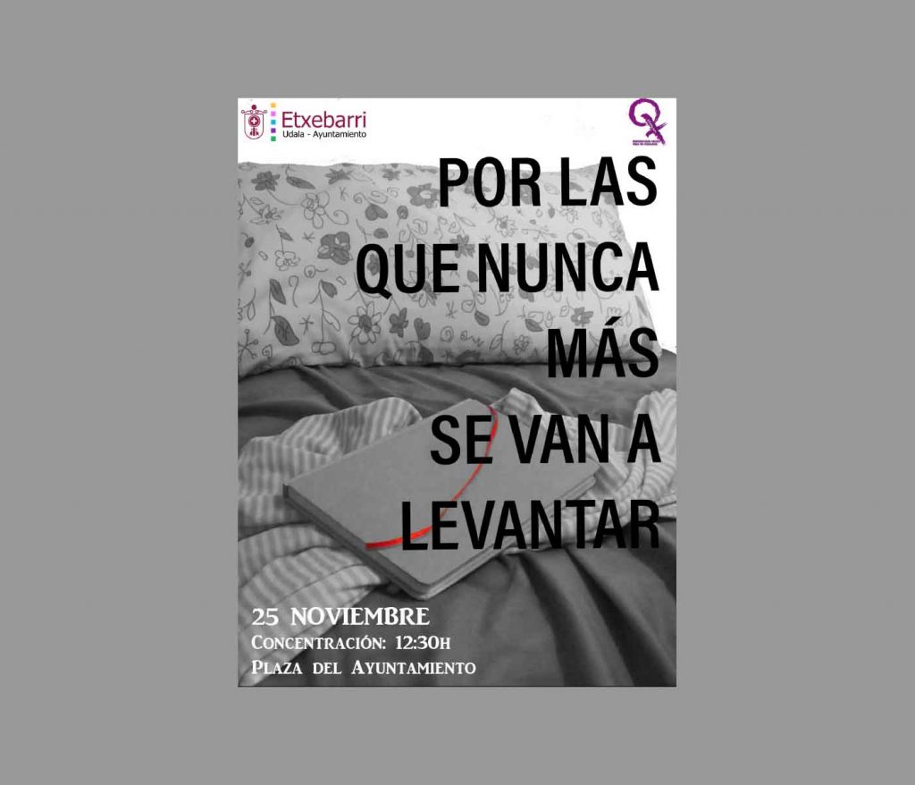 Por ejemplo, el cartel que ilustra esta noticia con el lema “Por las que nunca más se volverán a levantar” ha sido creado por la joven diseñadora gráfica y vecina de Etxebarri, Claudia Gil Casado.