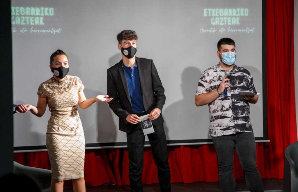 Con este objetivo, se celebró el domingo por al tarde en la Casa de Cultura esta emotiva gala bajo el lema “las y los jóvenes de Etxebarri del pueblo y para el pueblo”, conducida por Eleder Iglesias, Anne Garea y Mikel Luzuriaga, integrantes del programa de radio online nacido durante el confinamiento «Mofas de clausura» y que contó con la colaboración de Talka y Mugarri Gaztegunak y el Ayuntamiento de Etxebarri.