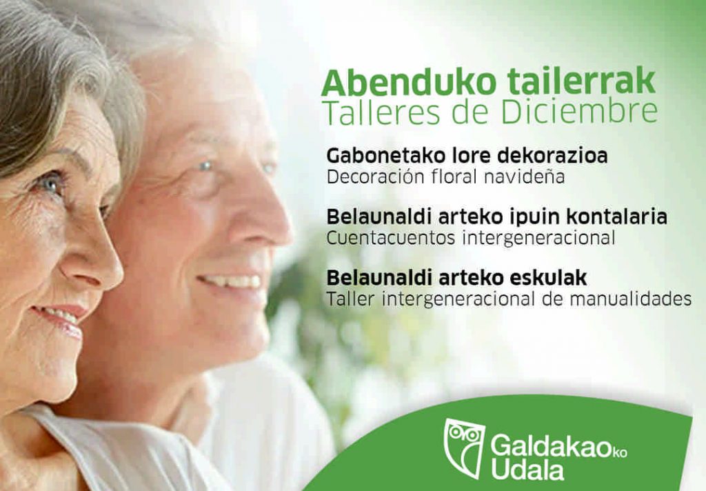 Las actividades organizadas por el Servicio de Dinamización de Personas Mayores del Ayuntamiento de Galdakao para este mes de diciembre, que comienza la próxima semana, contemplan la realización de tres talleres, decoración floral navideña, manualidades y un cuentacuentos . En estos últimos dos casos a la actividad se le ha querido dar un carácter intergeneracional y se realizarán en compañía de los nietos y nietas de las amamas y aitites participantes. El taller de cuentacuentos se llevará a cabo el 16 de diciembre de 17:30 a 18:30, con un máximo de 9 personas, y en él se podrá disfrutar de los cuentos recogidos al calor de la lumbre y el ambiente familiar de la navidad y el invierno de la mano de Apika.