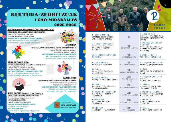 Verbenas, conciertos, kalejiras, danzas, teatro, talleres, concursos, exhibiciones…, y así hasta 60 actividades para todos los gustos y edades conforman el programa de las fiestas de Ugao-Miraballes en honor de Nuestra Señora de Udiarraga que se celebrarán del 7 al 15 de septiembre.