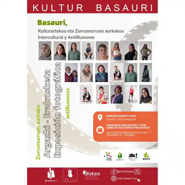 A través de la exposición fotográfica itinerante “Basauri, intercultural y antiRumores”, la Estrategia AntiRumores intenta visibilizar la diversidad del municipio, poniendo el foco en «aquello que nos une», aficiones, gustos, sueños…