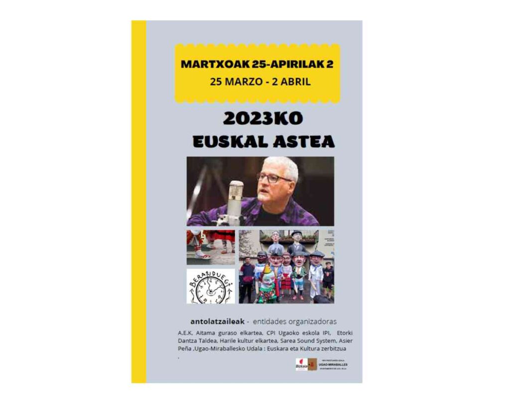 A.E.K, Aitama guraso elkartea, CPI Ugaoko eskola IPI, Etorki Dantza Taldea, Harile kultur elkartea, Sarea Sound System, Asier Peña y los servicios de Euskara y Cultura del Ayuntamiento de Ugao-Miraballes son las entidades que han configurado un completo programa. En este sentido, la Euskal Astea, cuyo componente esencial es la participación popular, contará con numerosas citas dirigidas a todas las edades y gustos. El catálogo de actividades recoge propuestas e invitaciones para participar en esta fiesta de la cultura euskaldun.