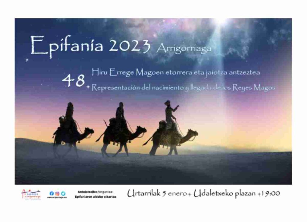 Será la 48º edición de la Epifanía de Arrigorriaga, que volverá a celebrar el nacimiento de Jesús y la llegada de los Reyes Magos, con la participación de gran parte del municipio que, con indumentaria de la época, inundarán de ambiente y espíritu navideño las calles de Arrigorriaga.