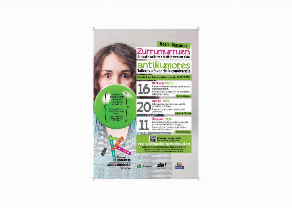 Bajo el lema “ Antes de inflar un rumor, piénsalo dos veces,… para no dañar la convivencia entre personas”, la estrategia antirumores de Basauri ha organizado tres talleres a favor de la convivencia para este semestre dentro de su labor de formación