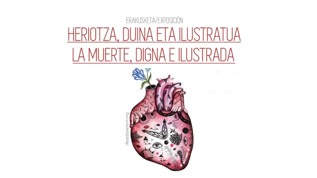 Hasta el 27 de febrero se podrá visitar la exposición itinerante “La Muerte, Digna e Ilustrada” en la casa de las mujeres de Basauri, Marienea, en la que diferentes artistas jóvenes ilustran su visión particular de la muerte digna. Esta muestra está organizada por Marienea, junto a la Asociación Derecho a Morir Dignamente-Duintasunez Hiltzeko Eskubidea de Euskadi en colaboración con el grupo de Mujeres Viejas Feministas.