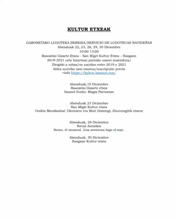 Gabonaldía prestará especial atención a los y las protagonistas de las navidades, los y las txikis, sin olvidar a los y las jóvenes con actividades como Ludotecas, actividades musicales, talleres, actividades deportivas, teatro, … o las colonias de medio día en euskera para niñas y niños de entre 7 y 11 años que se pusieron en marcha hace dos años.