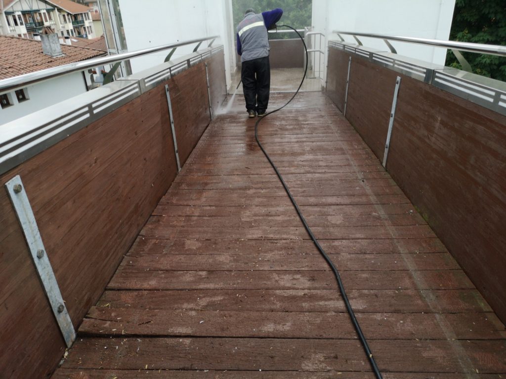 La próxima semana los vecinos y vecinas de Arrigorriaga podrán estrenar un nuevo piso antideslizante en la pasarela de Makua que cruza en voladizo las vías del tren.