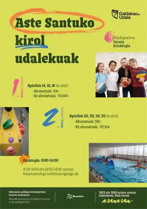 Las colonias deportivas de Semana Santa en Galdakao abren el plazo de inscripción