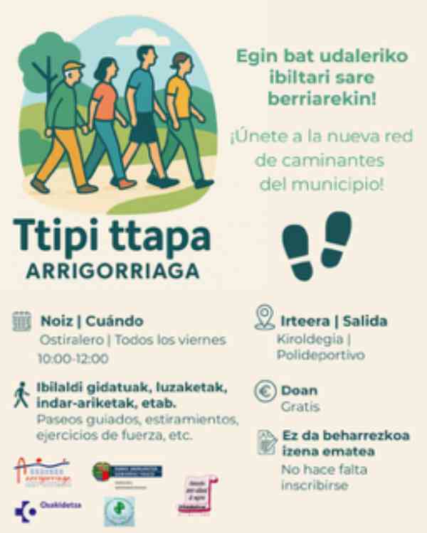 «Ttipi Ttapa Arrigorriaga» no solo es una iniciativa para promover una actividad deportiva saludable, organizando rutas guiadas de paseo por diferentes rincones del municipio, también quiere activar la socialización entre vecinos y vecinas.