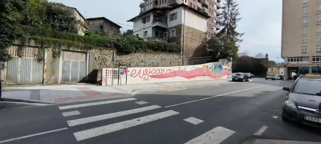 El tránsito para peatones que existía desde la haurreskola de la calle Bizkai hasta el paso de cebra que hay justo antes del parking descubierto no ofrecía la suficiente seguridad frente al tráfico rodado. Básicamente se trataba de un camino muy pequeño, bastante desmejorado y delimitado por pivotes, que se encontraba a la misma altura que la carretera.