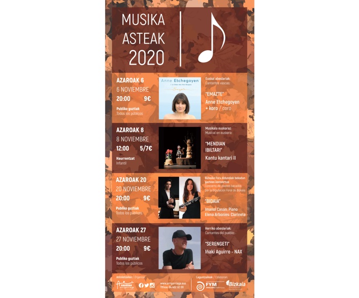 Un año más noviembre llenará de música el Lonbo Aretoa de Arrigorriaga con la celebración de Musika Asteak y sus diferentes estilos musicales.