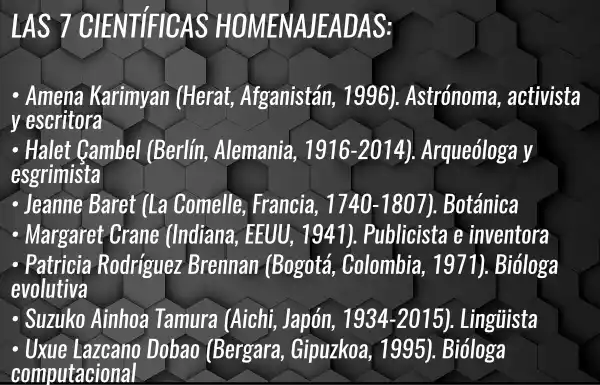 modo, los y las comerciantes se convertirán en divulgadores de la vida y del trabajo de estas científicas y ayudarán a visibilizar la aportación de las mujeres a la ciencia”. Este año participan comercios de Abanto-Zierbena, Arrasate, Arrigorriaga, Barakaldo, Bilbao, Durango, Elgoibar e Irura.