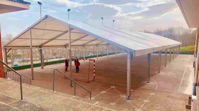 Dos nuevas carpas en el patio de colegio de Arrigorriaga permitirán mantener la distancia de seguridad cuando hace mal tiempo