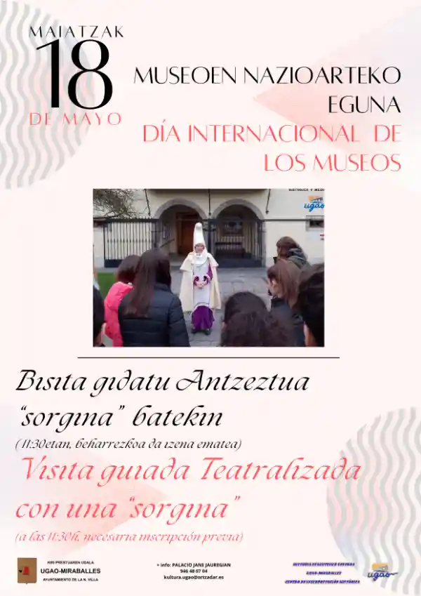 El Ayuntamiento de Ugao Miraballes quiere celebrar el Día internacional de los Museos con sus vecinos y vecinas de una manera muy original, ya que el sábado 18 de mayo a las 11.30 “Domeka”, una sorgina (bruja) del siglo XIV, realizará una visita teatralizada por las calles de la villa en la que irá explicando los oficios que desempeñaban las mujeres en aquellos tiempos y cómo era su vida, desde la Edad Media hasta la actualidad.