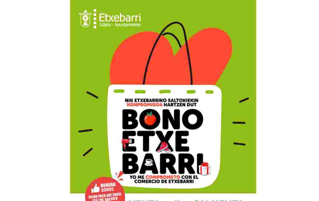 La venta bonos se realiza desde hoy on-line (www.etxebarri.eus). No obstante, todas las personas que no tengan acceso y disponibilidad de medios electrónicos podrán adquirir sus bonos de forma presencial. Lo bonos se podrán utilizar hasta el 15 de enero, pudiendo adquirirse 3 por DNI de personas mayores de edad.